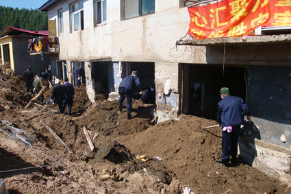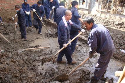 隆基志愿者在災(zāi)區(qū)清理淤泥