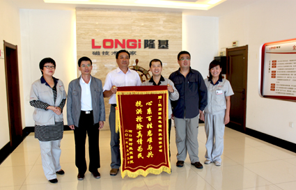 政府領(lǐng)導(dǎo)及災(zāi)區(qū)代表贈(zèng)送隆基錦旗